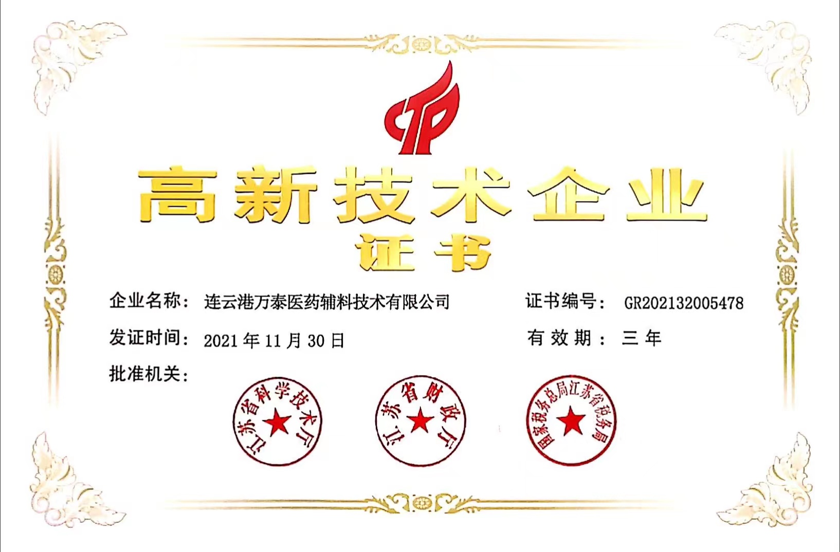 高新技術(shù)企業(yè)證書